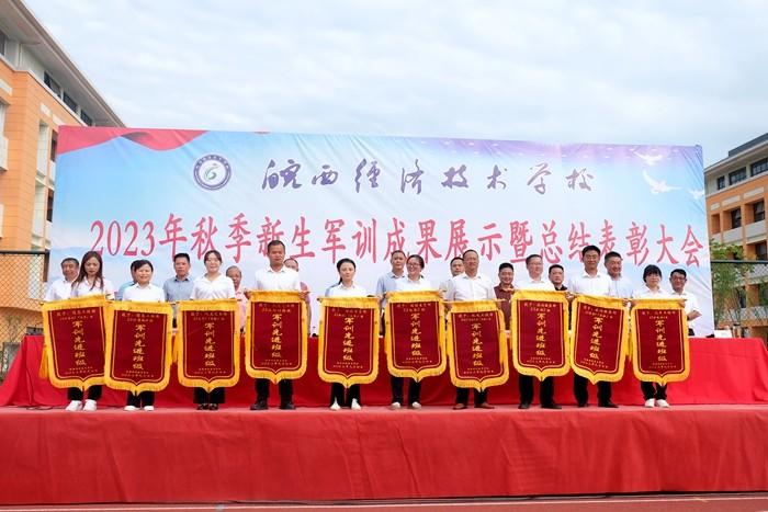 会上,为获得本次军训的优秀学员和先进班集体颁发了荣誉证书和锦旗。