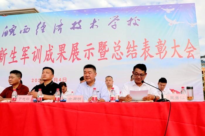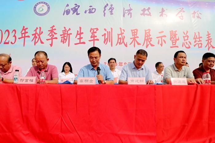 商建新在讲话中充分肯定了皖西经济技术学校的办学成就。他指出,新时期以来,皖西经济技术学校在县委、县政府的坚强领导下,学校职业教育持续高质量发展,成为全市首屈一指、省内有影响力的中职学校,到了社会的一致认可,为霍邱的经济社会发展培养一大批专业技能过硬、综合素质优秀的人才。他勉励同学们在今后的学习、生活中,要保持军训中形成和表现出的坚韧不拔的意志、坚不可摧的作风、勇往直前的英雄气概和团结互助的精神,保持高度的组织纪律性,认真学好科学文化知识和技术技能,全面提高自身素质,逐步成长为祖国的栋梁、时代的骄子。