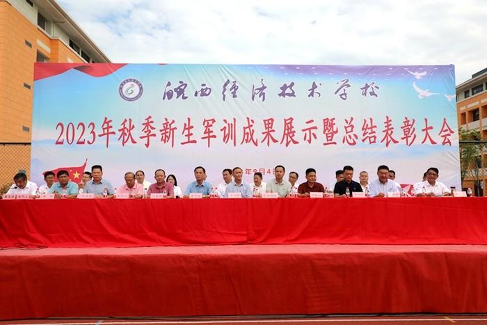9月4日下午,皖西经济技术学校隆重举行2023秋季军训成果展示暨总结表彰典礼。霍邱县委教育工作领导小组秘书组专职副组长商建新,霍邱二中初中部、霍邱三中、霍邱一中城南校区初中部、新店初中、左王初中、农机校等生源学校负责人,学校党政班子、各教学部部长、政教处人员、23级家长代表、23级班主任和学生参加活动。典礼由校党委委员、副校长李正局主持。
